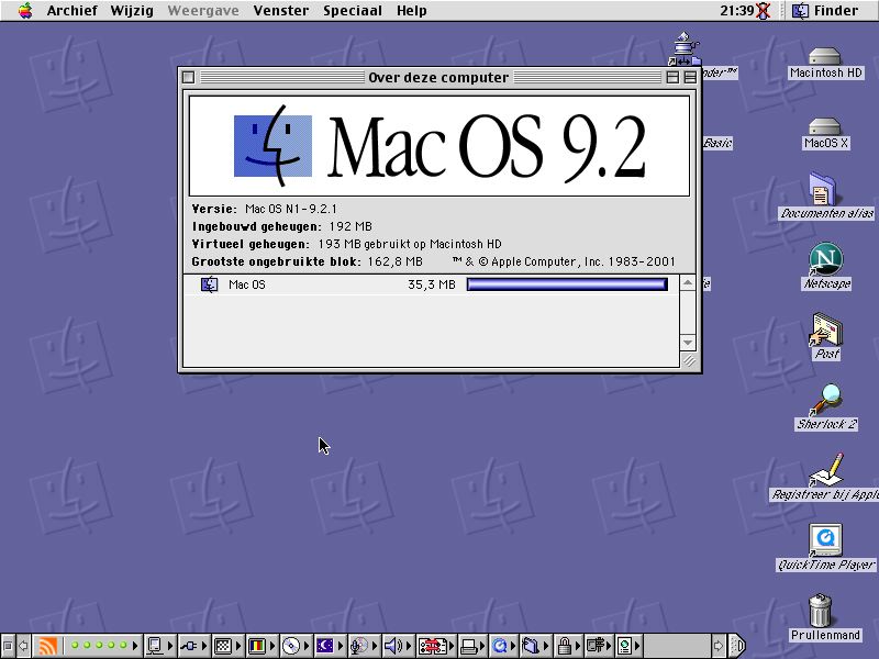 8GB CompactFlash-kaart. Deze is in tweeën gesplitst en zowel MacOS 9.2.1