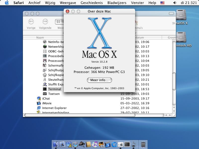 als Mac OS X Jaguar zijn geïnstalleerd.