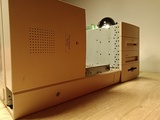 en het deel met de drive bays en de voeding door twee plastic klemmen los te