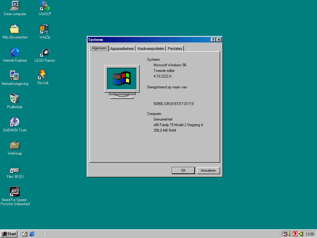 bouwjaar van de machine (2002), is ondersteuning voor zowel Windows 9x als