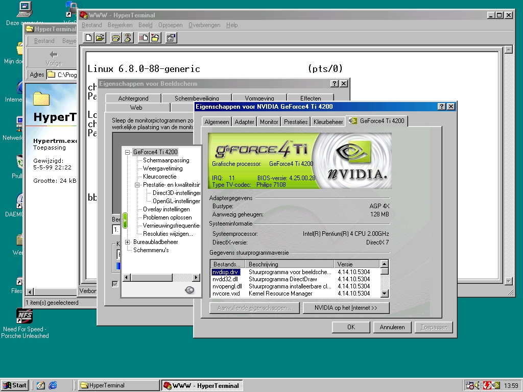 - Videokaart: nVidia GeForce 4 4200 Ti (128 MB)