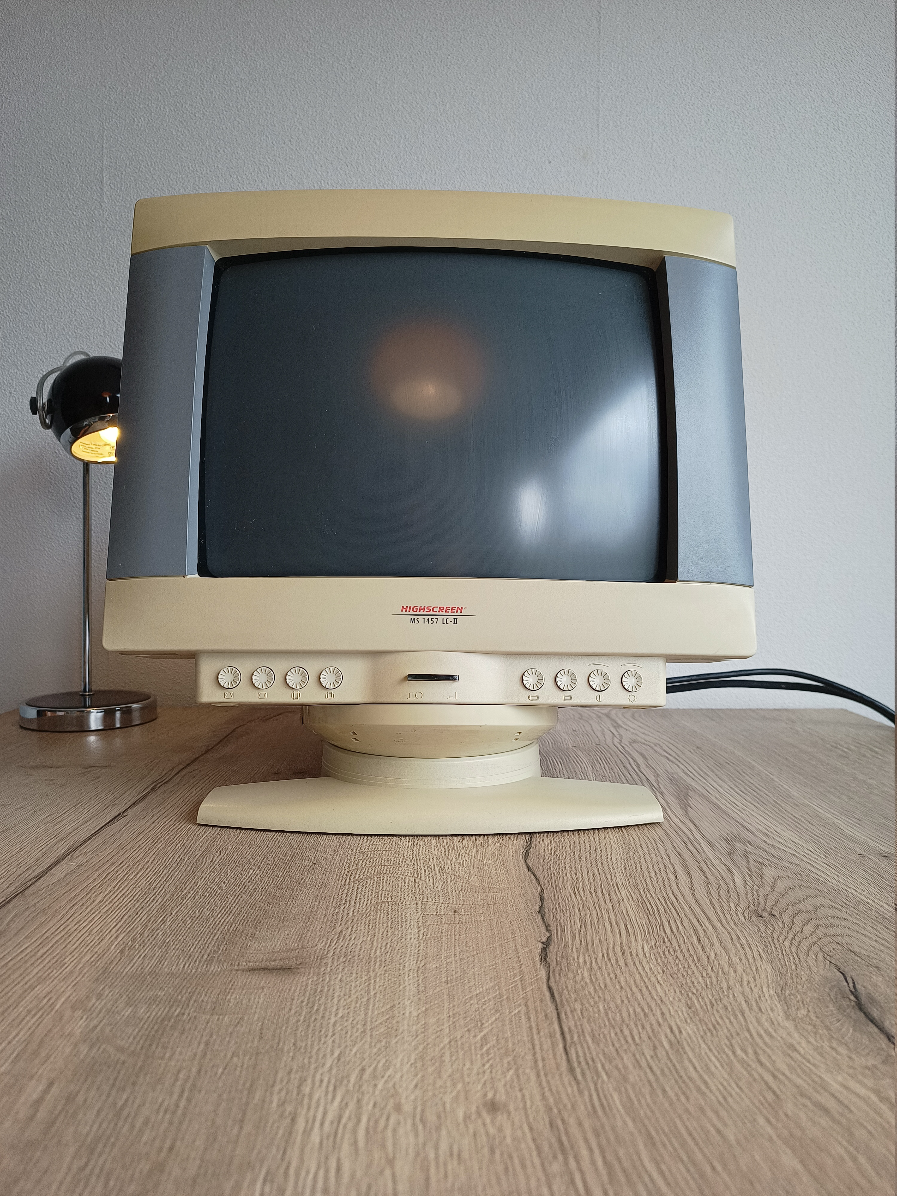 Deze, zeg maar gerust bijzonder vormgegeven, Highscreen-monitor werd meegeleverd