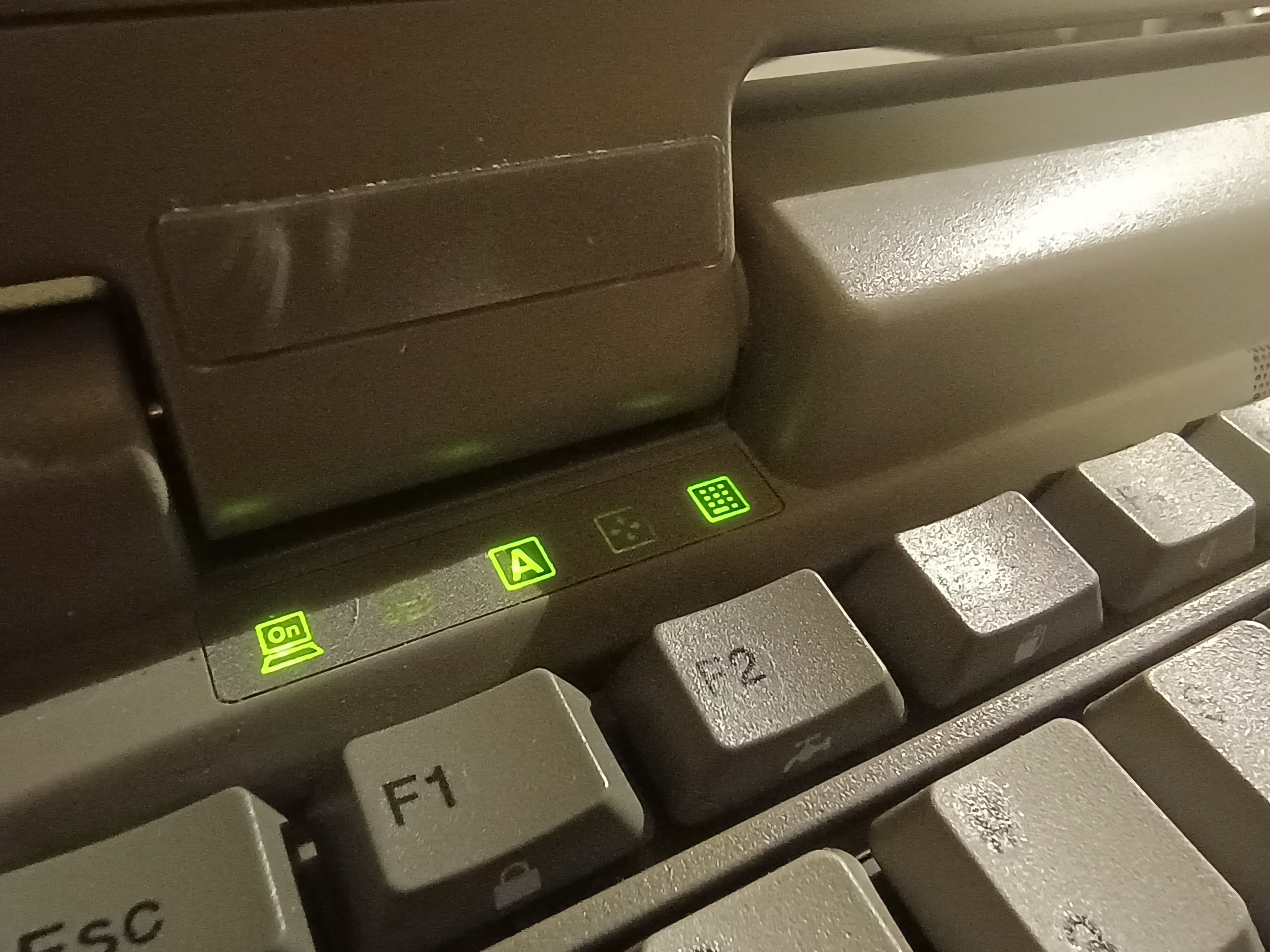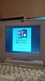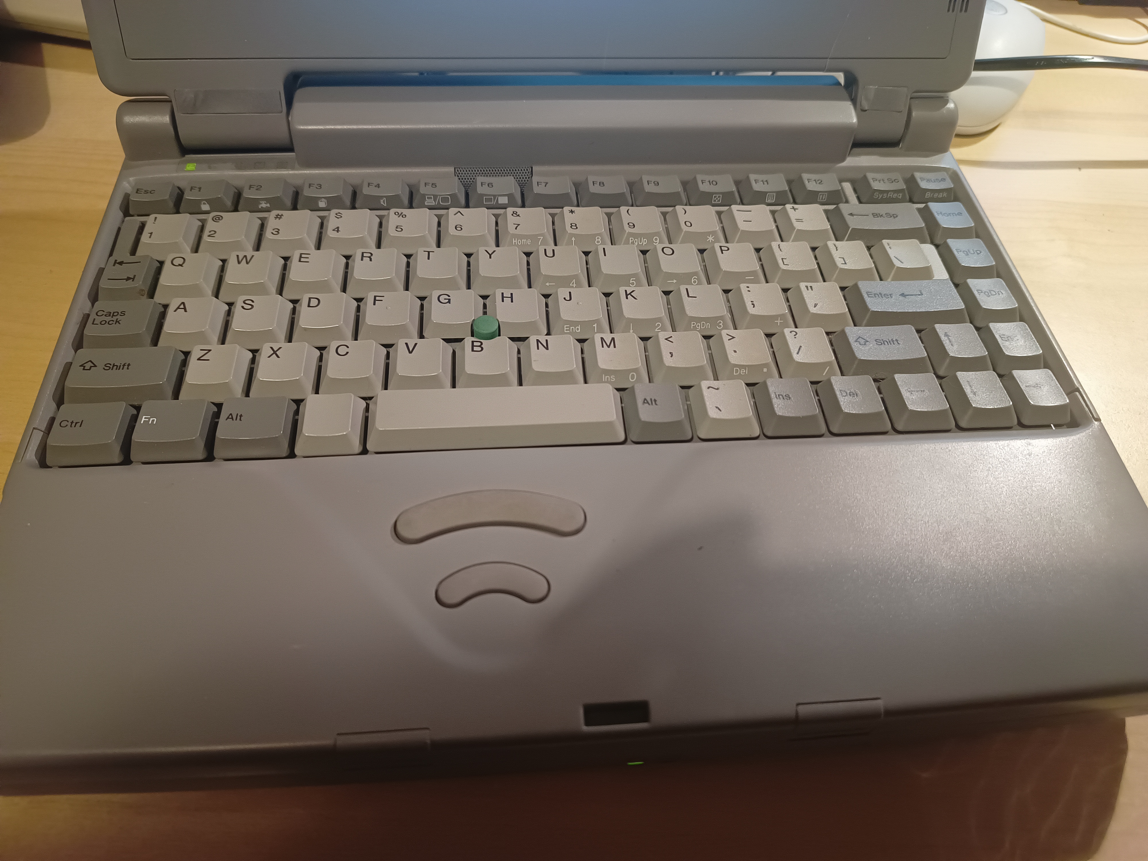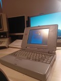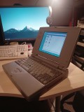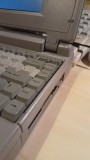 De laptop was voorzien van een Xircom CreditCard Ethernet+modem-PCMCIA-kaart,
