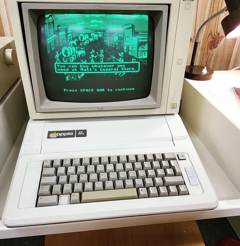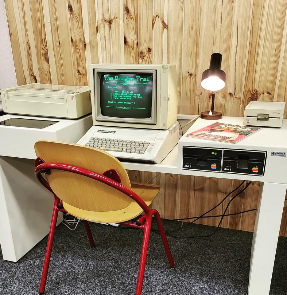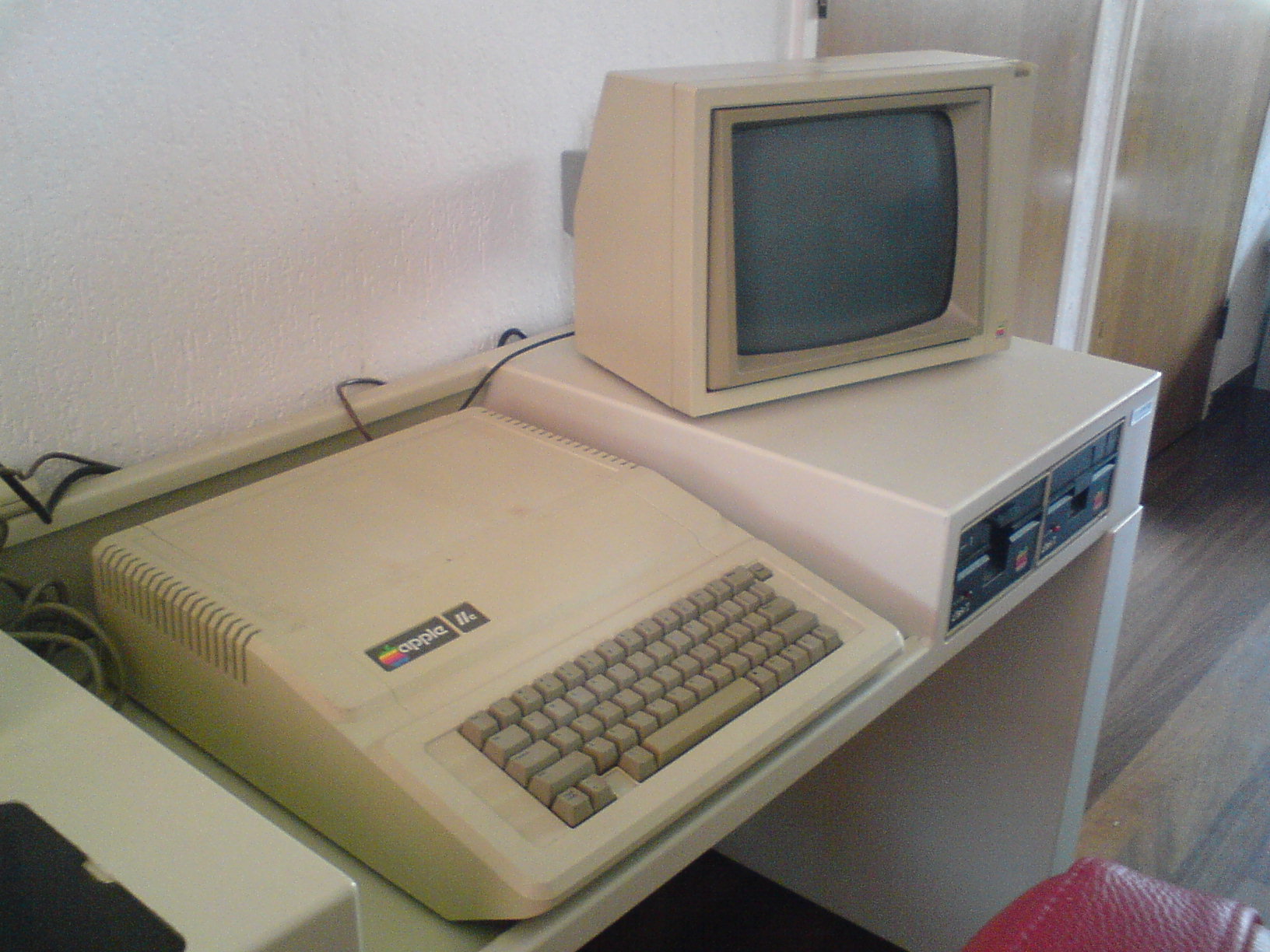 De Apple //e, met Disk ][, Monitor // en joystick zijn nog steeds in mijn