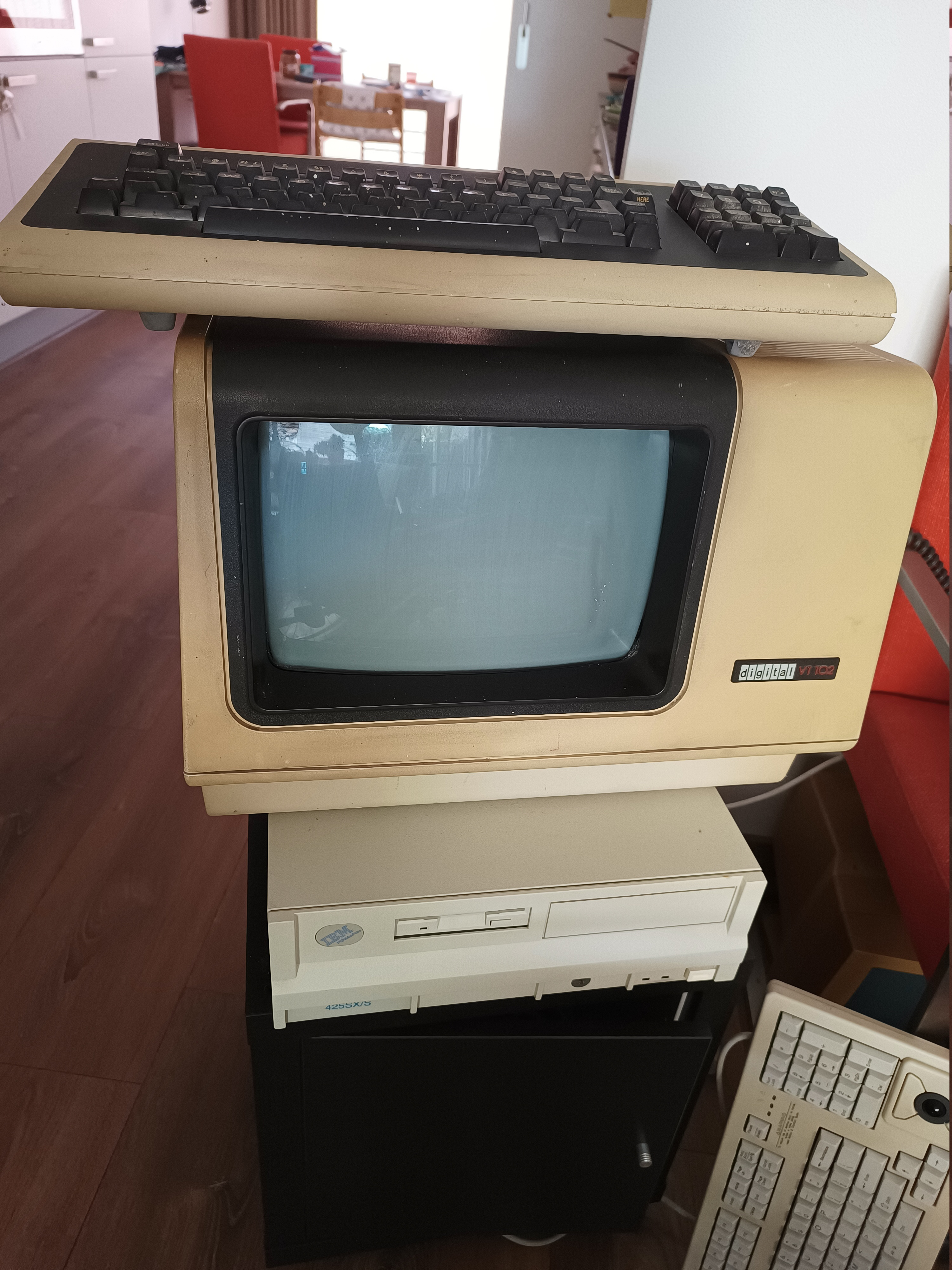 plotters, teletypes, televisies, laptops, XT's en XT-klonen, AT-klonen, vroege