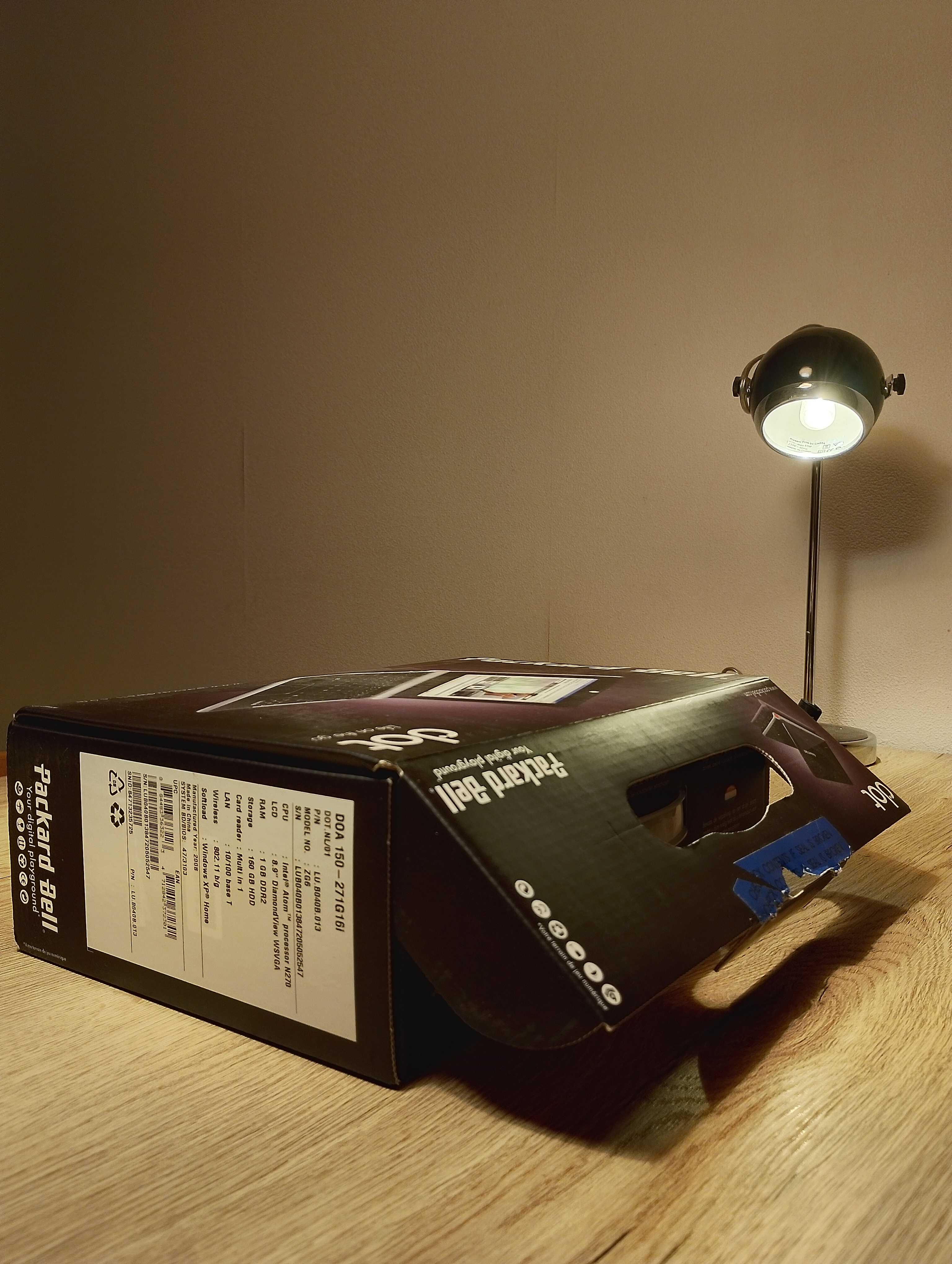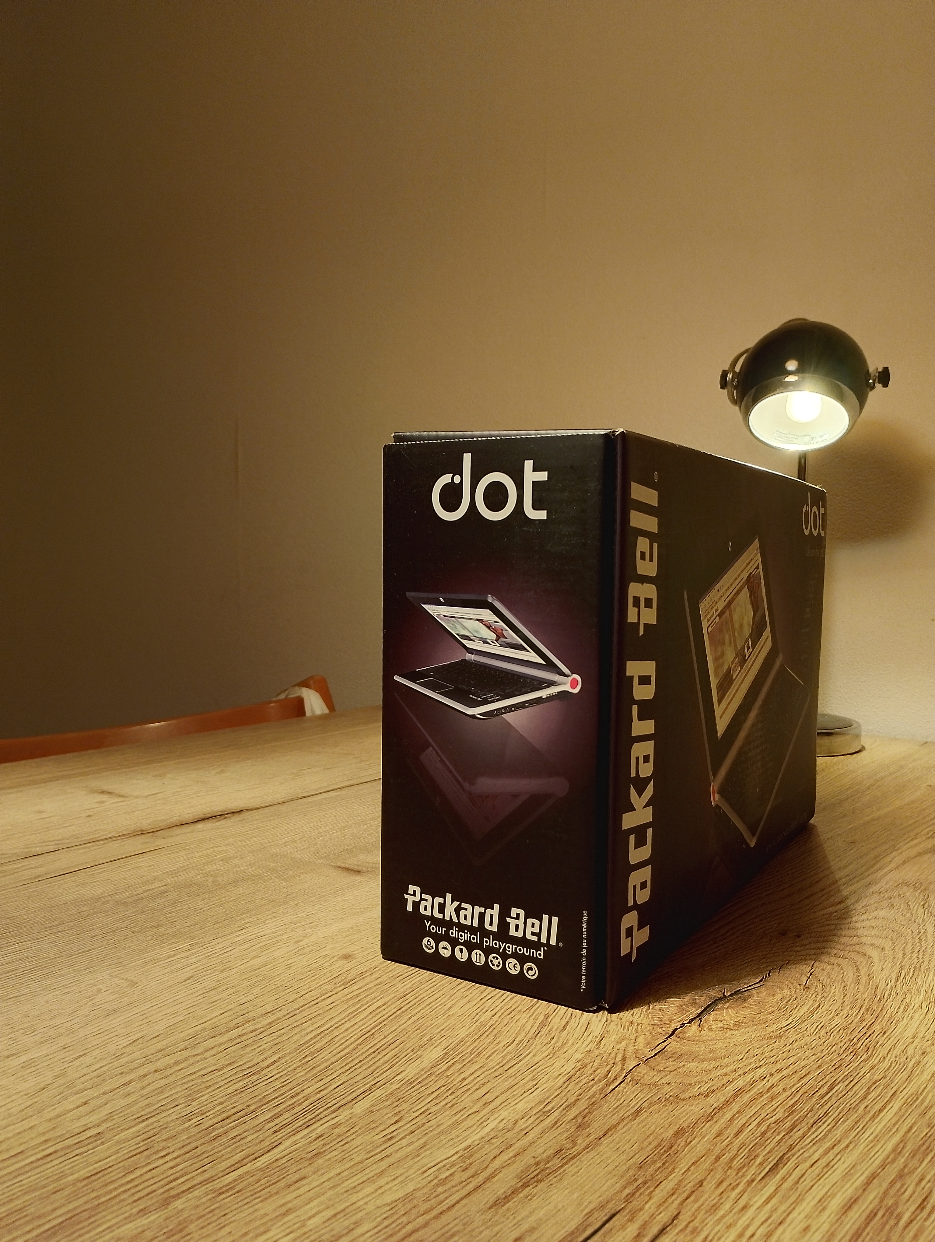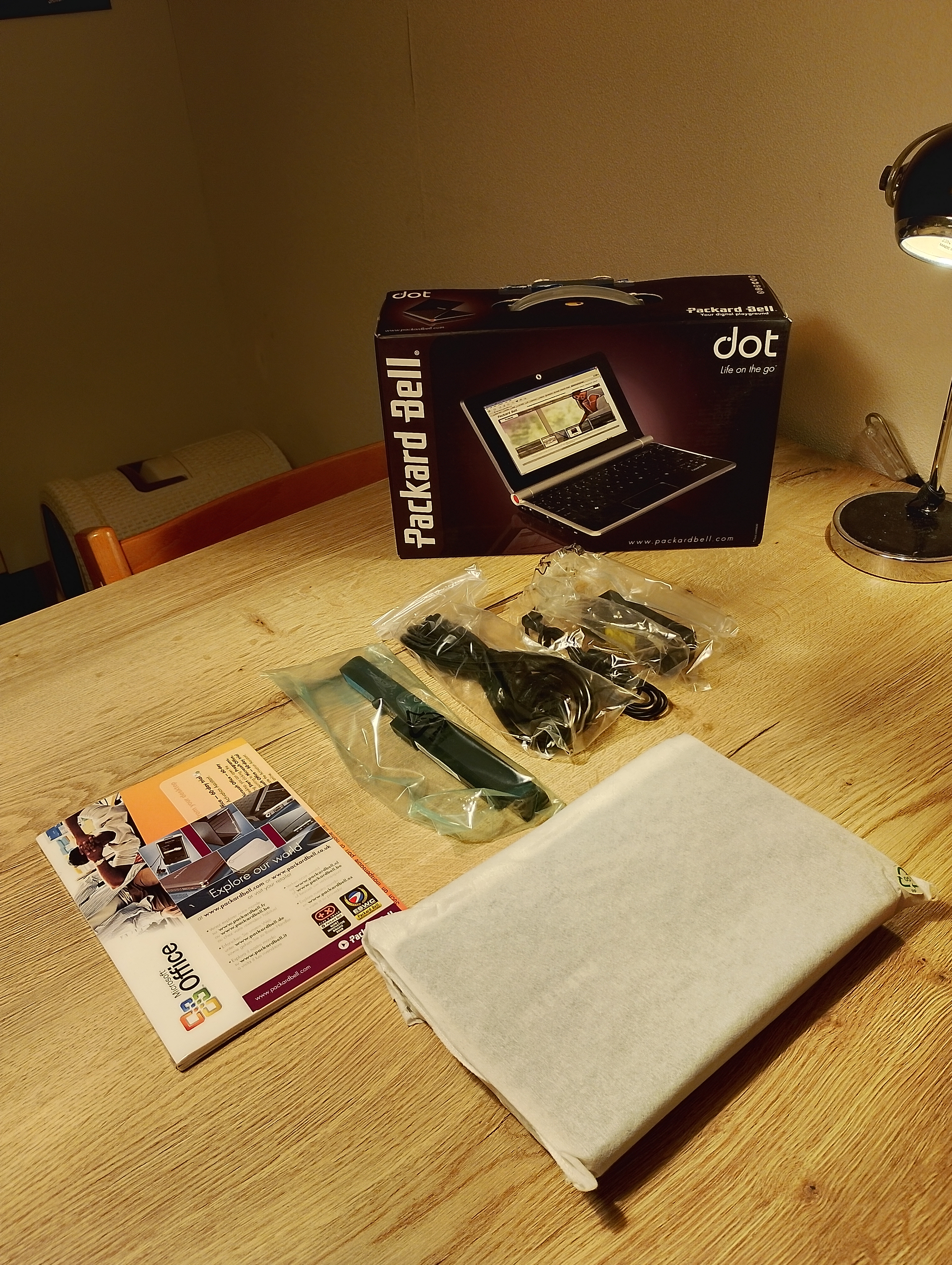 advertentie voor een nog verzegelde Packard Bell Dot in het overzicht met