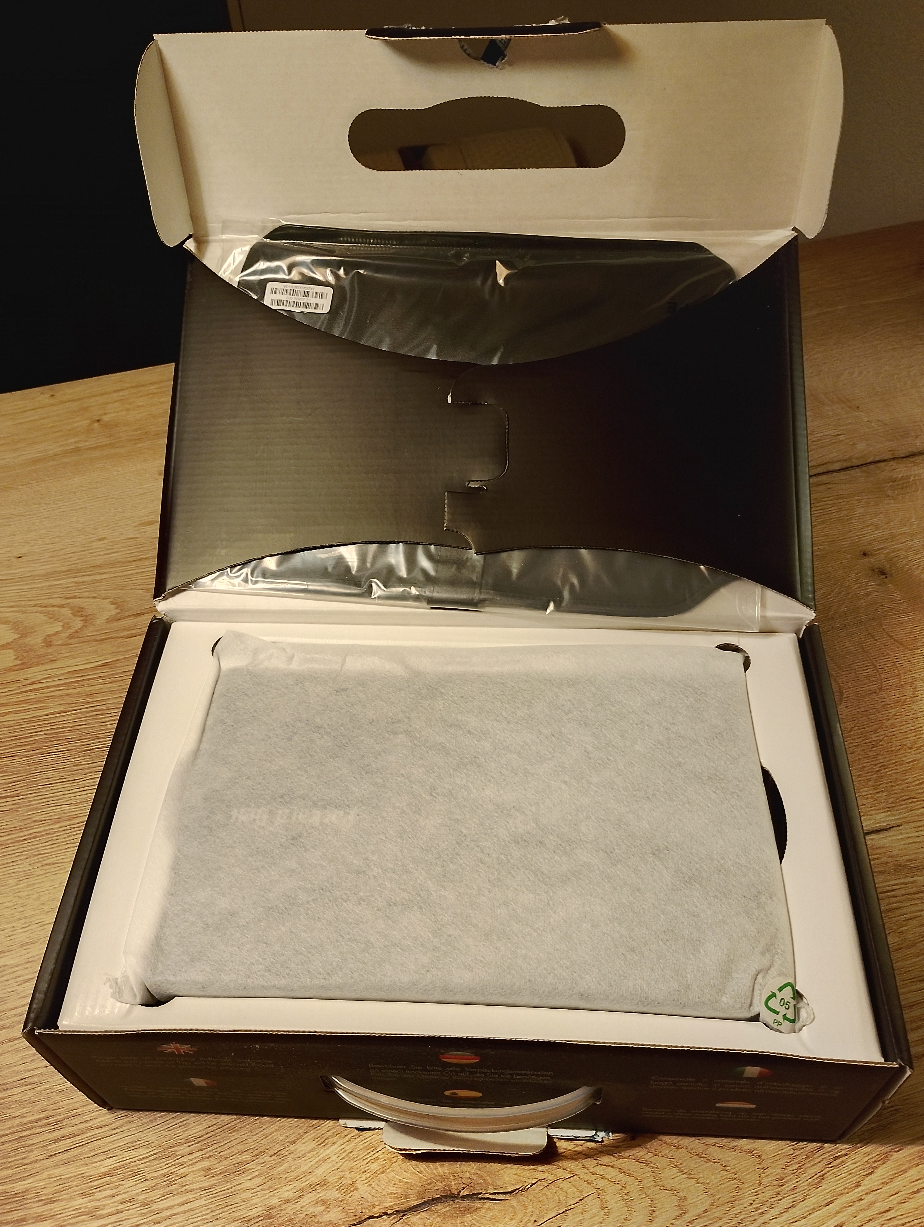 Na enkele dagen heb ik de laptop in huis en de doos is duidelijk nog verzegeld,