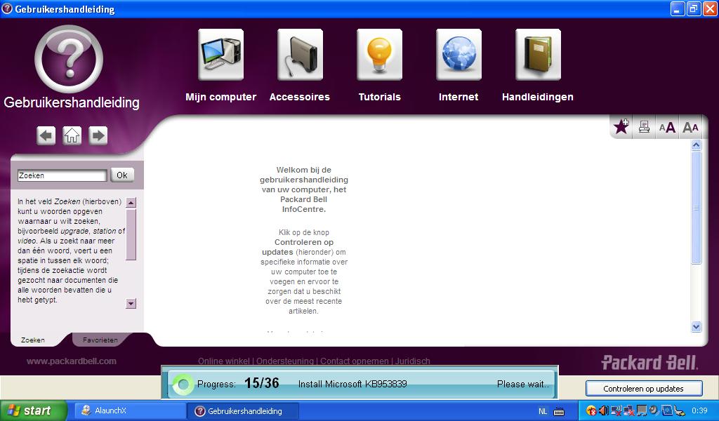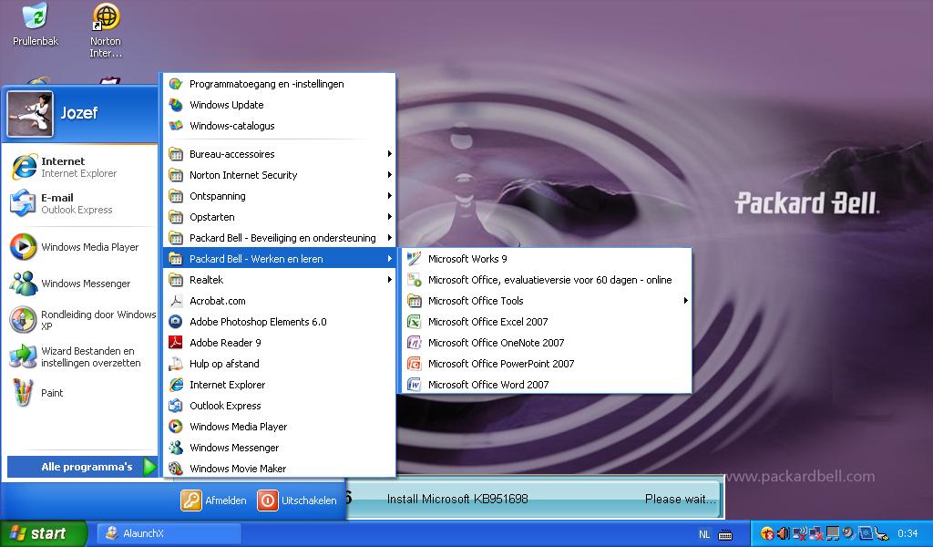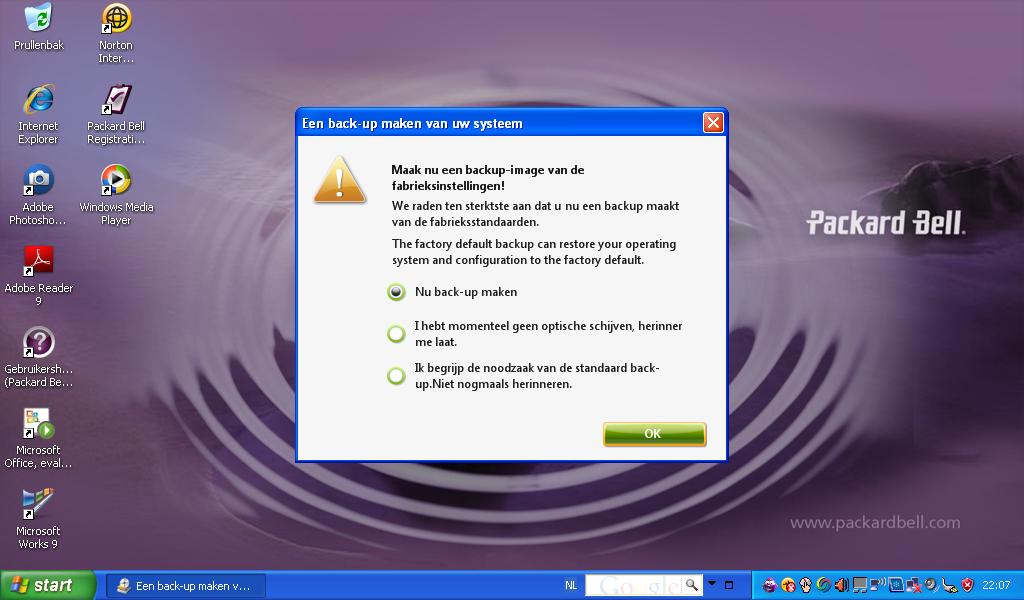 voorgeïnstalleerde Packard Bell-software.