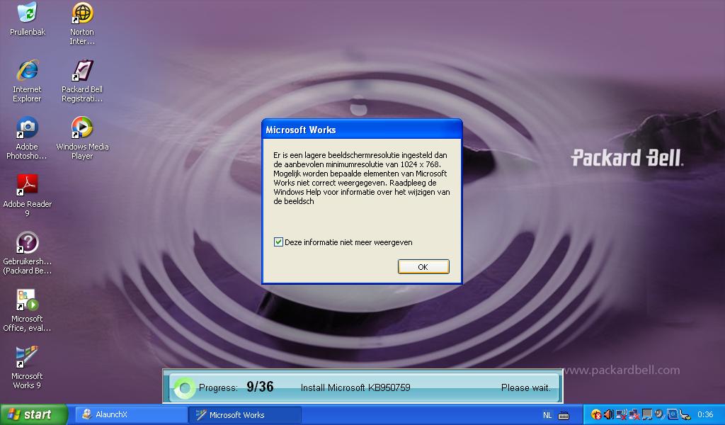 (1024x600) voor het venster. Iets waar Microsoft Works actief voor waarschuwt in