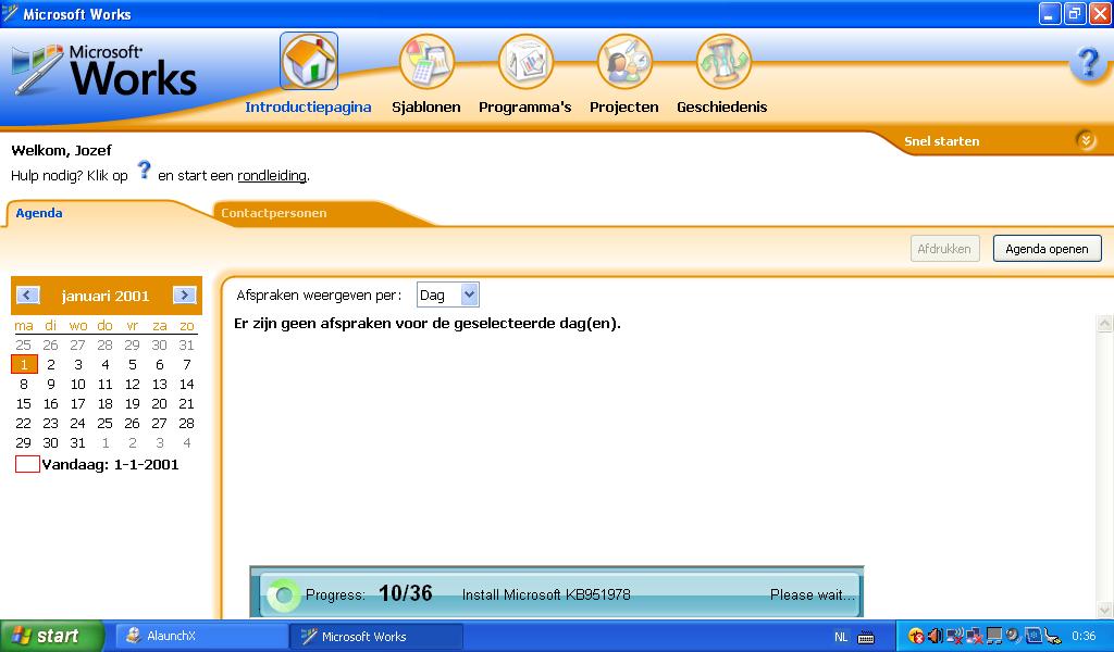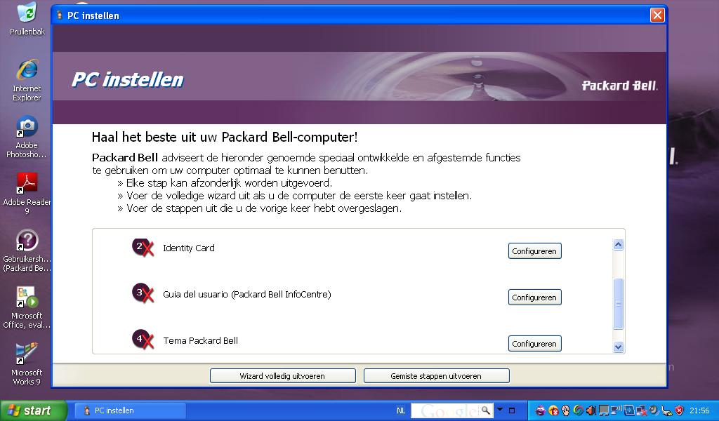 volgt de welkomstwizard van Windows XP. Je maakt een gebruiker aan en wordt naar