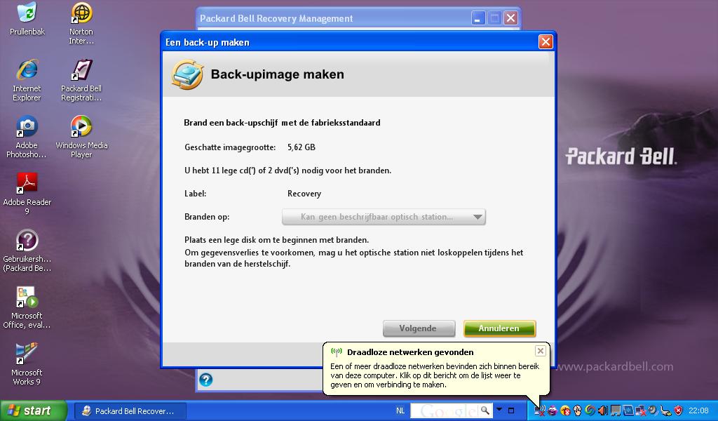 Windows XP, omdat het mijn voorkeur heeft. De Recovery Management-applicatie